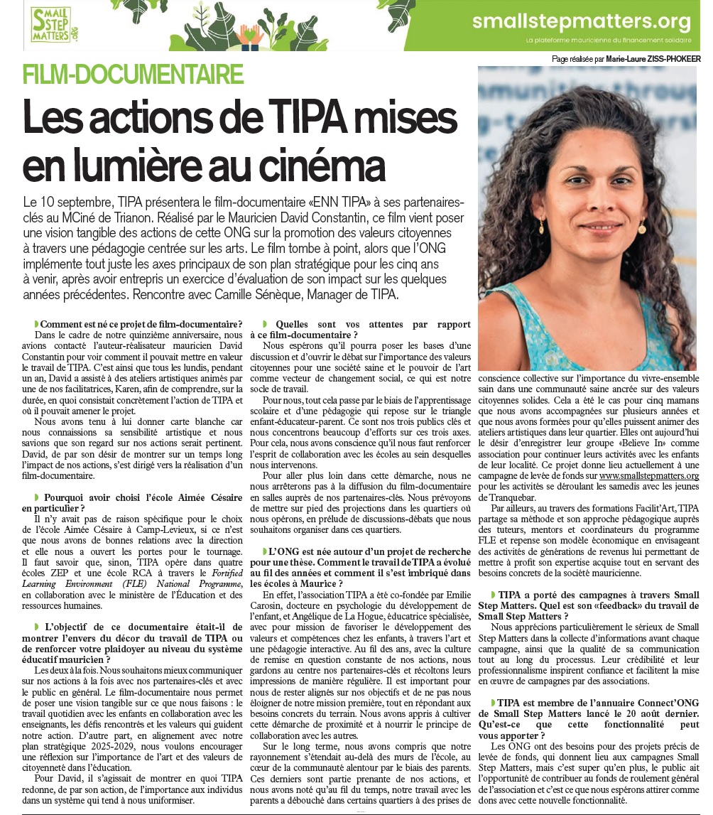 Film-Documentaire: Les actions de TIPA mises en lumière au cinéma