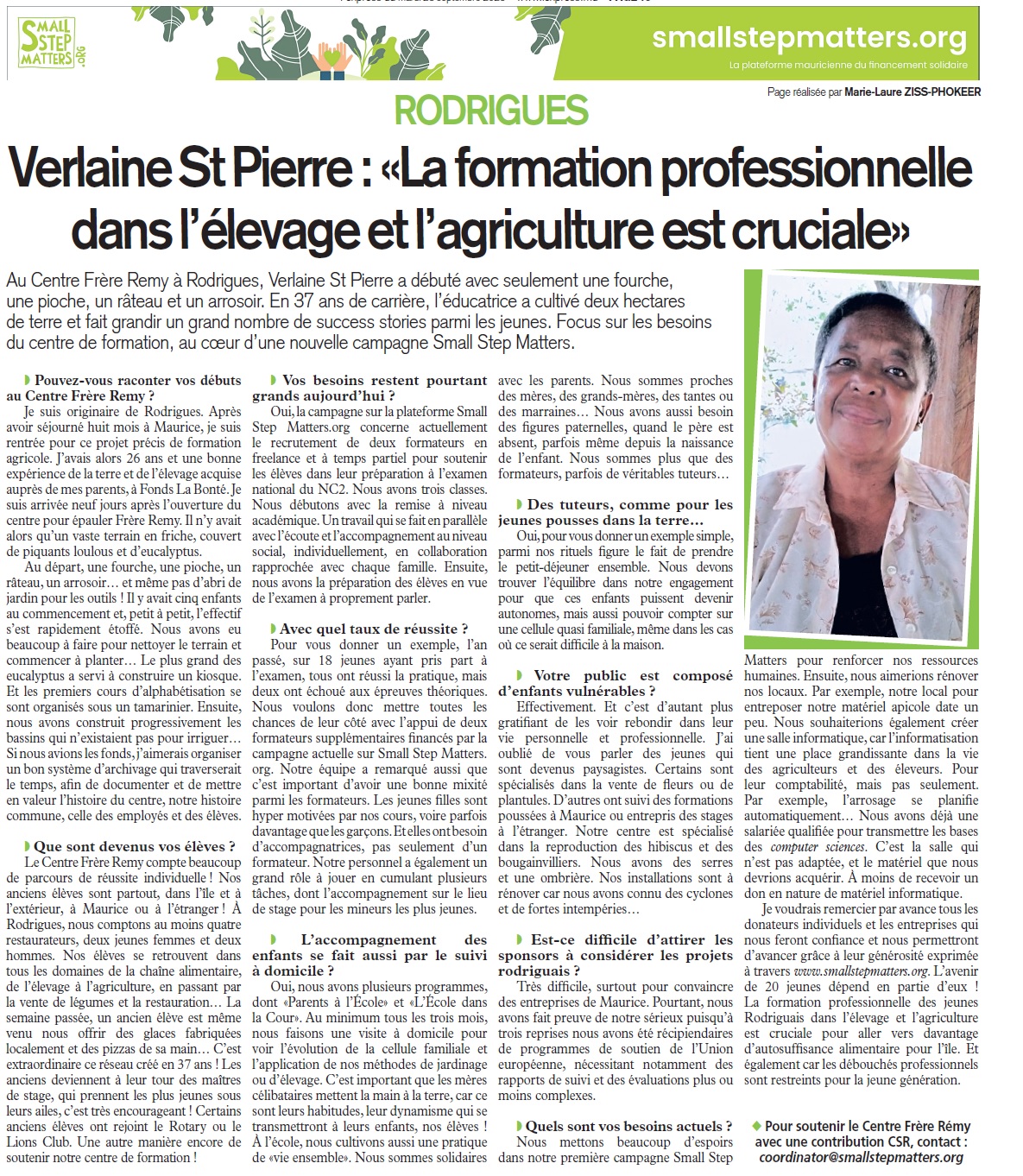 Rodrigues – Verlaine St Pierre: » La formation professionelle dans l’élevage et l’agriculture est cruciale «