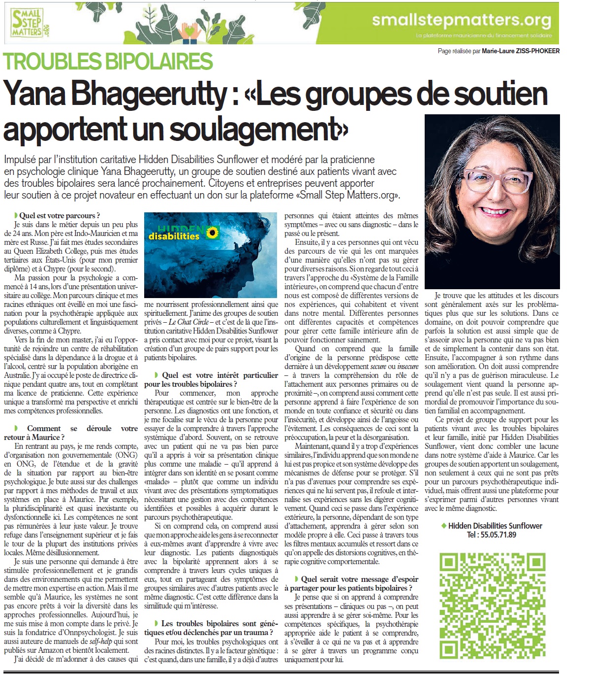 Troubles Bipolaires – Yana Bhageerutty: « Les groupes de soutien apportent un soulagement »