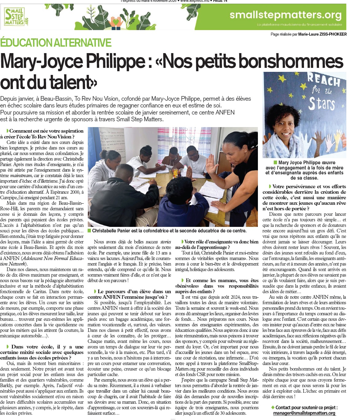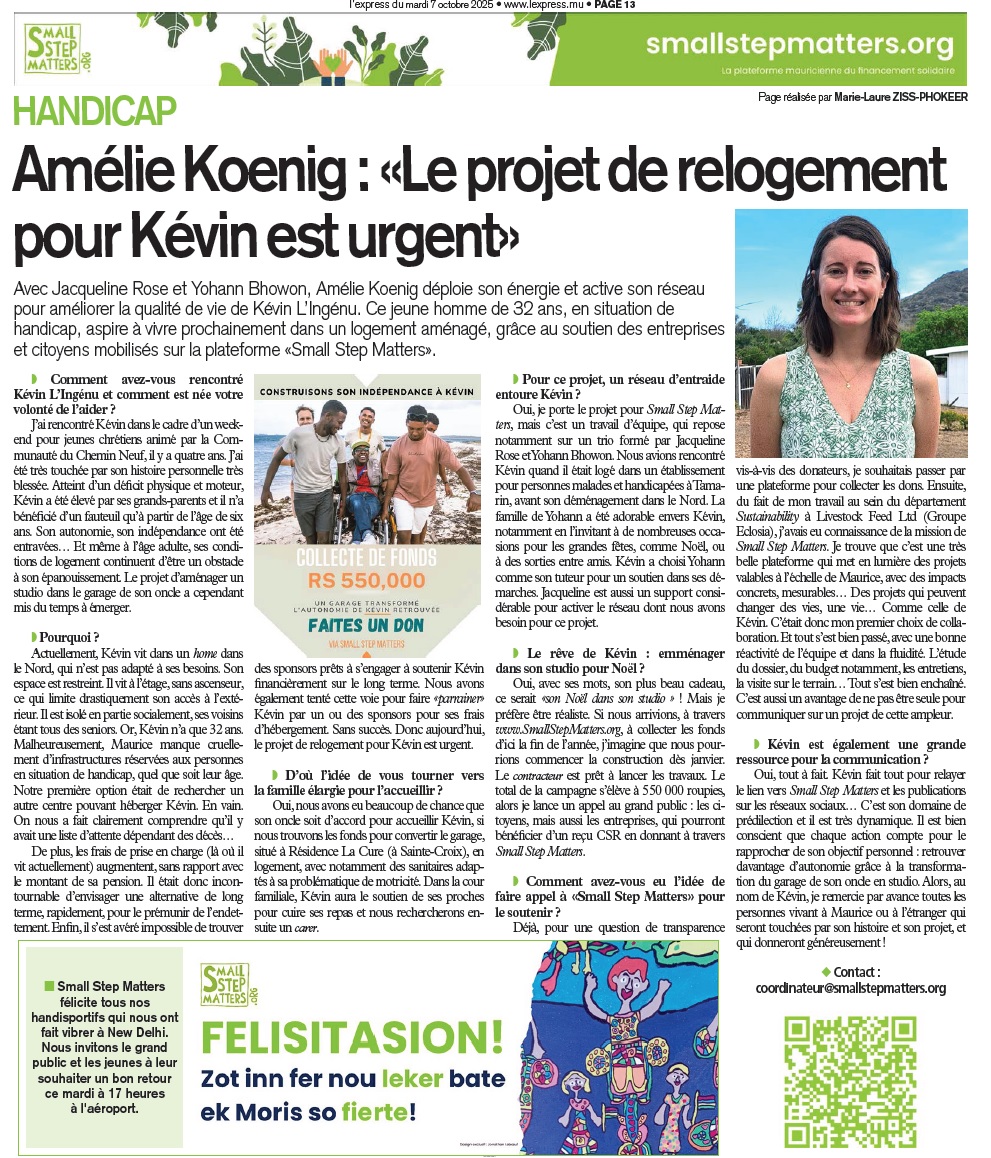 20251021_LEXPRESS_Sarah Bathfield – »Une dizaine de bénéficiaires ont encore besoins d’Equipements