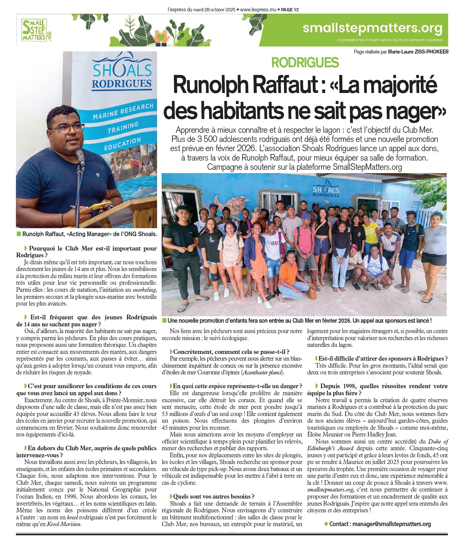 Rodrigues – Runolph Raffaut – ‘La majorité des habitants ne sait pas nager’