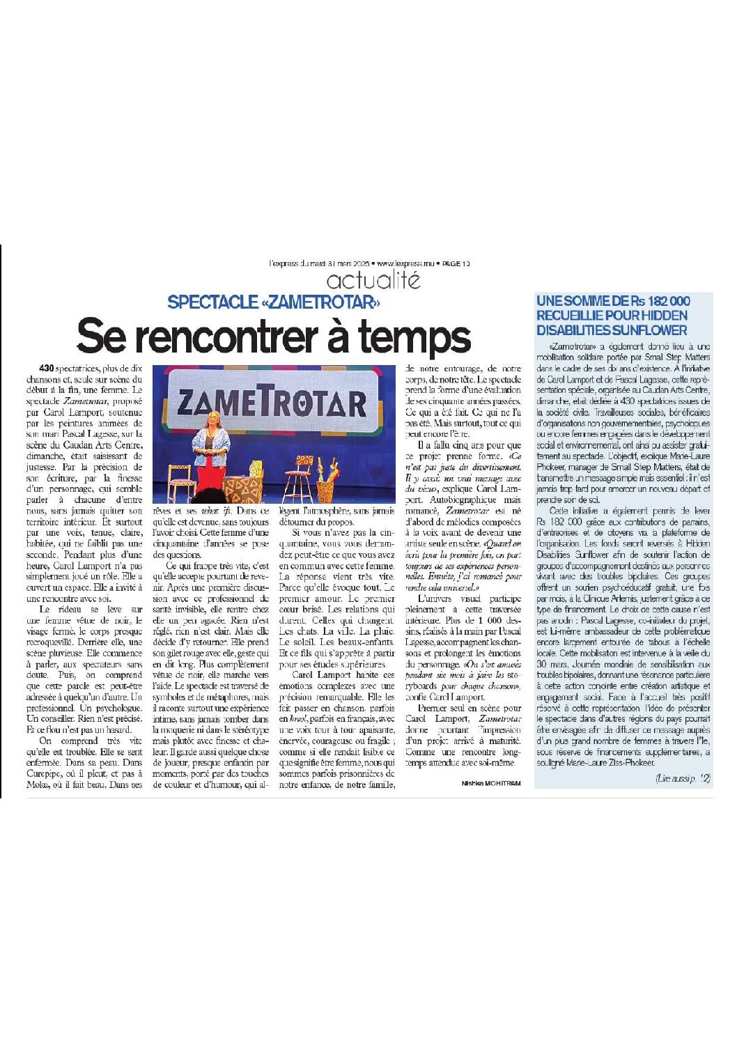 Spectacle « Zametrotar » – Se rencontrer à temps
